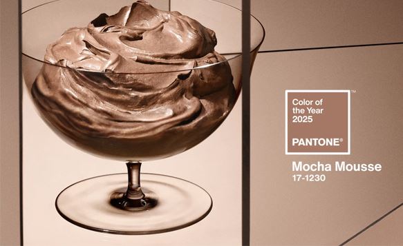 展望 2025 年,Pantone 色彩研究所選擇了 PANTONE 17-1230 Mocha Mousse (摩卡慕斯),一種溫暖的棕色調,蘊含著內在的豐富質感,讓人聯想到可可、巧克力和咖啡的美味品質,滿足我們對舒適的渴望。